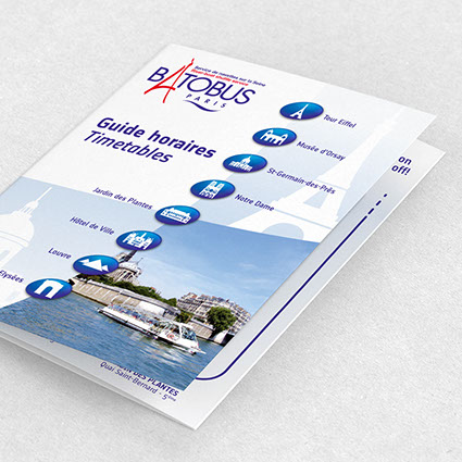 Création des nouvelles brochures, des pictogrammes, de la signalétique des sites et du marquage des bateaux.