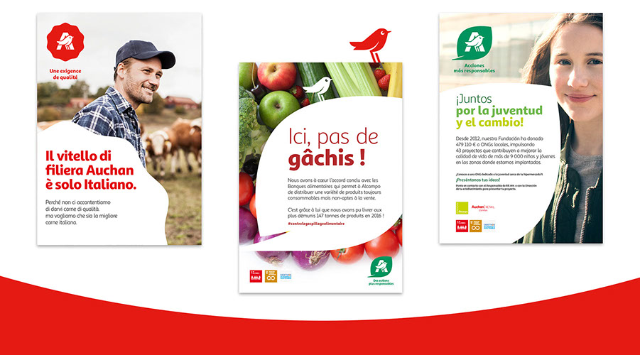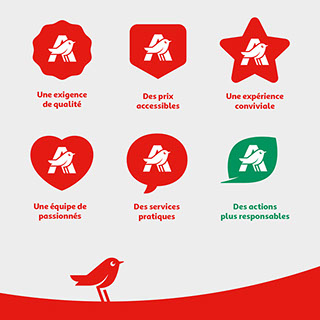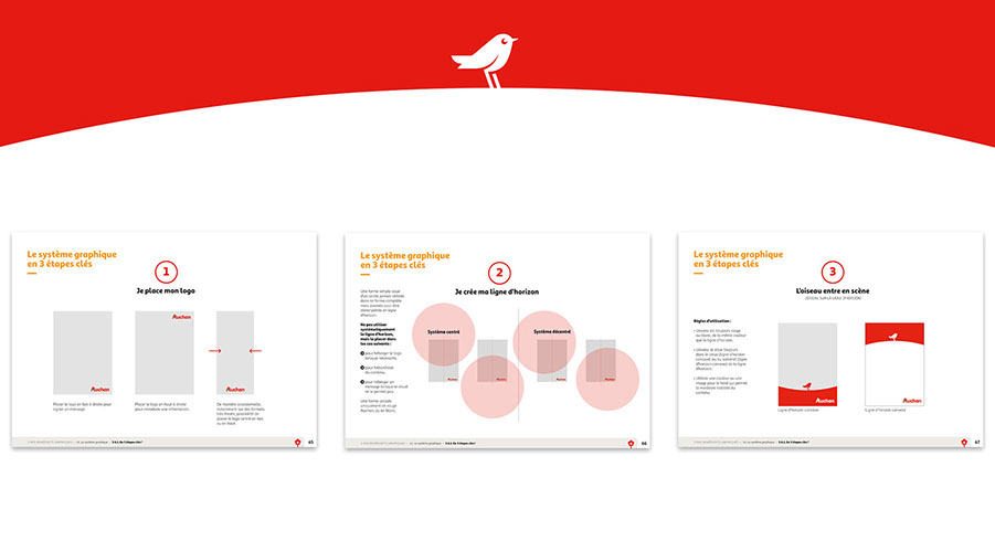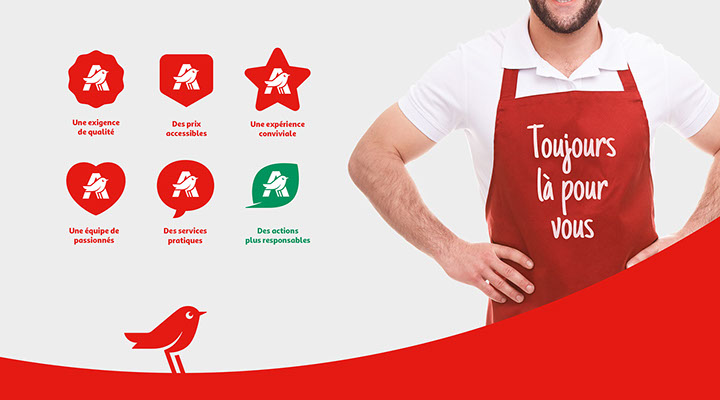 Auchan a décidé de mettre à jour son univers visuelle en mettant principalement en avant l'oiseau issu du logotype.