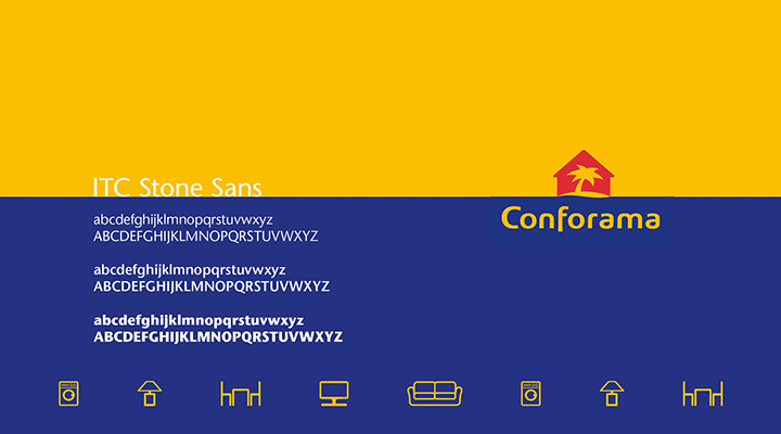 Lors de la refonte graphique globale de la marque Conforama j'ai pu créer le style graphique, le territoire photographique et iconographique et tous les supports de communication du groupe.