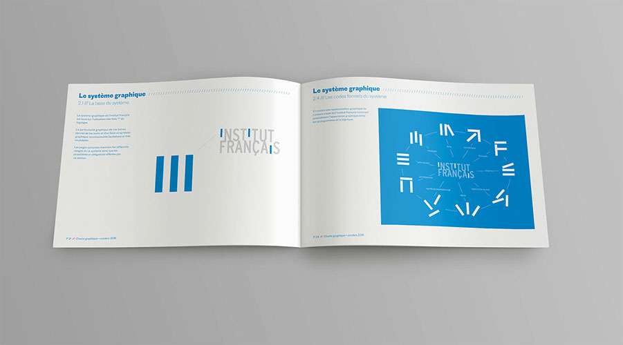 Création de la charte graphique de l'Institut Français, normalisation des éléments institutionnels (logo, pictogrammes) et des supports de communication.