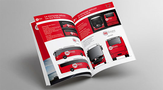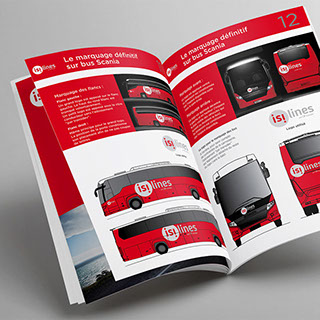 Création de la charte graphique présentant les normes et règles d'utilisation du logotype, les outils bureautique, les supports de communication et le marquage des autocars.