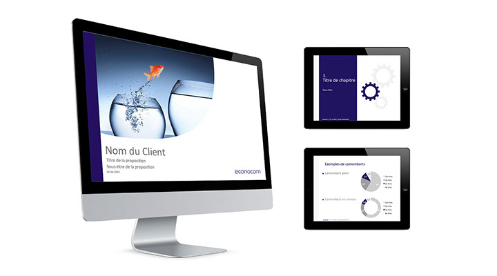 Création du style graphique d’Osiatis puis adaptation à la nouvelle marque Econocom. Déclinaison sur les supports de communication print (édition interne et externe, affichage, etc) et les supports bureautique (présentation Word et Powerpoint, etc).