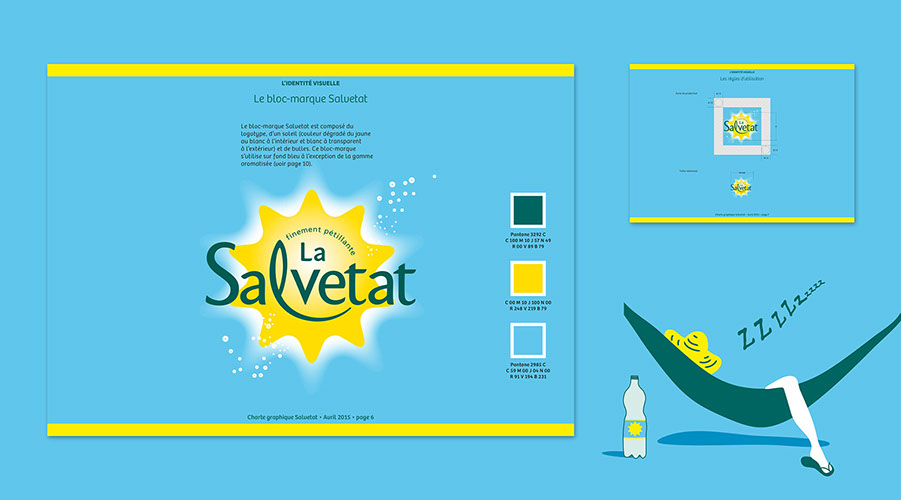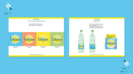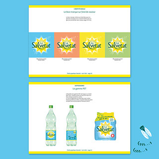 Suite à la mise à jour du logo et des packagings de la marque j'ai créé la charte graphique de Salvetat qui présente et normalise les éléments de la marque ainsi que les packagings et étiquettes des bouteilles.